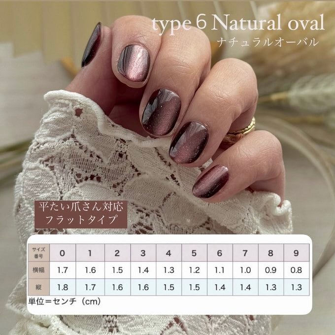 2.ショートオーバル・・・・自爪に近いショートサイズで先端がオーバル型です。ショートならではの快適な装着感でお出かけ時も安心♫女性らしい印象の綺麗な指先を演出してくれるネイルチップです。