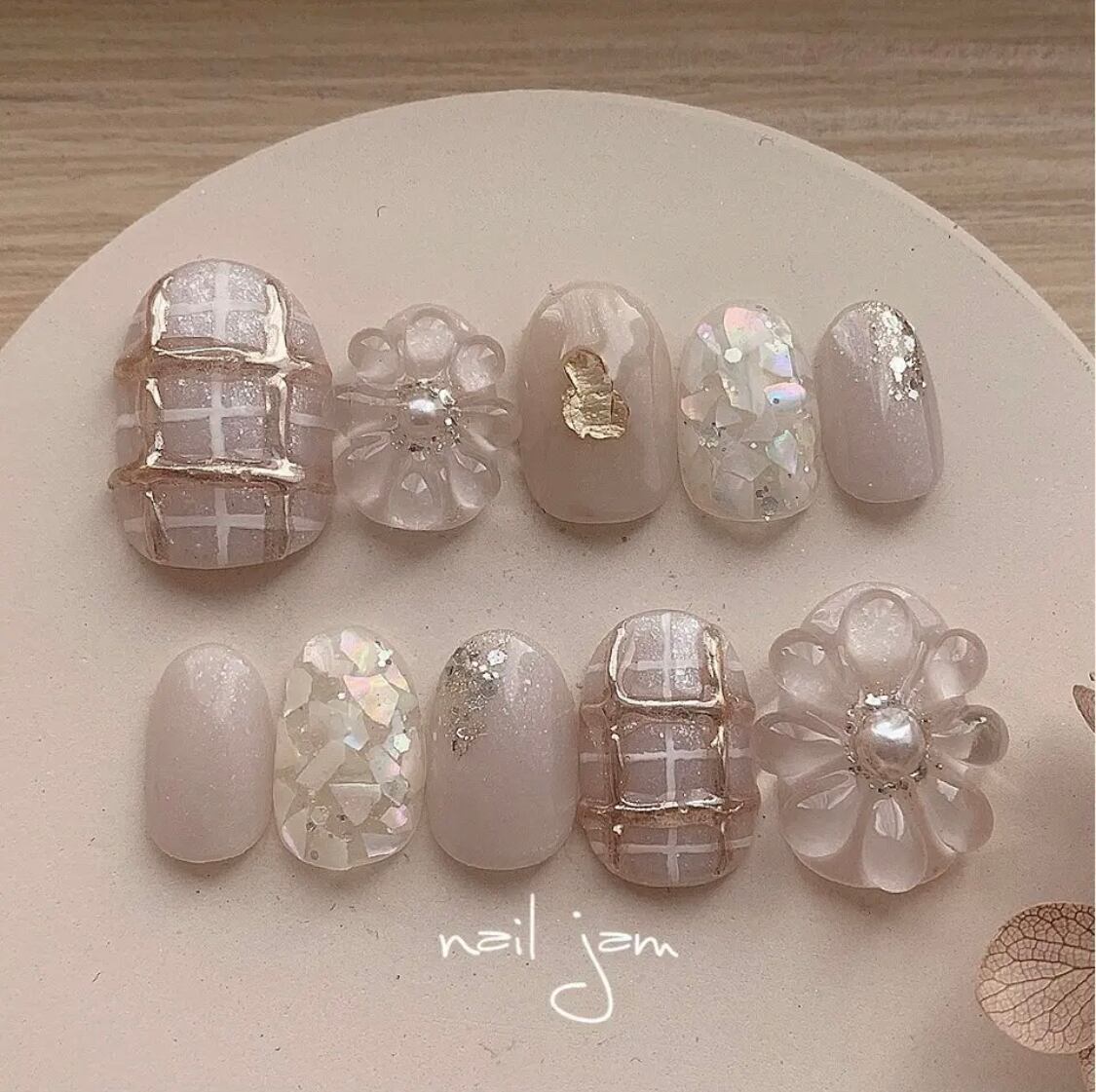 Puffing plaid 【ぷっくりチェックのフラワーネイル No.008】